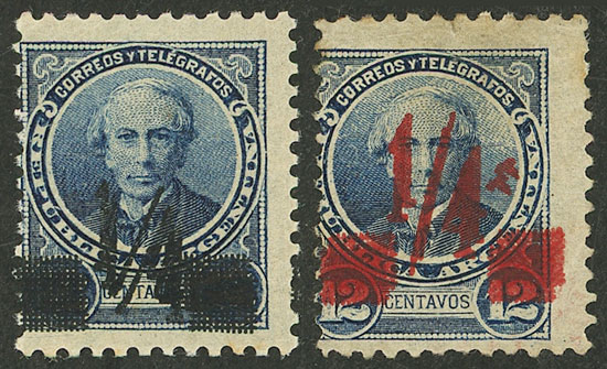 134a, 1890 provisionals, both with DOUBLE OVERPRINT, VF! (Image)