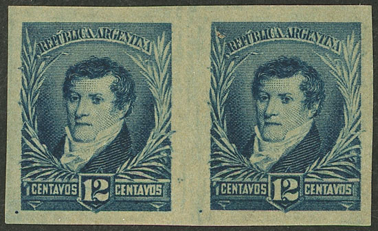 1892 12c. Belgrano, IMPERFORATE PAIR, VF quality! (Image)