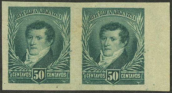 1892 50c. Belgrano, IMPERFORATE PAIR, MNH (+50%, almost all the known examples are without gum), VF quality! (Image)