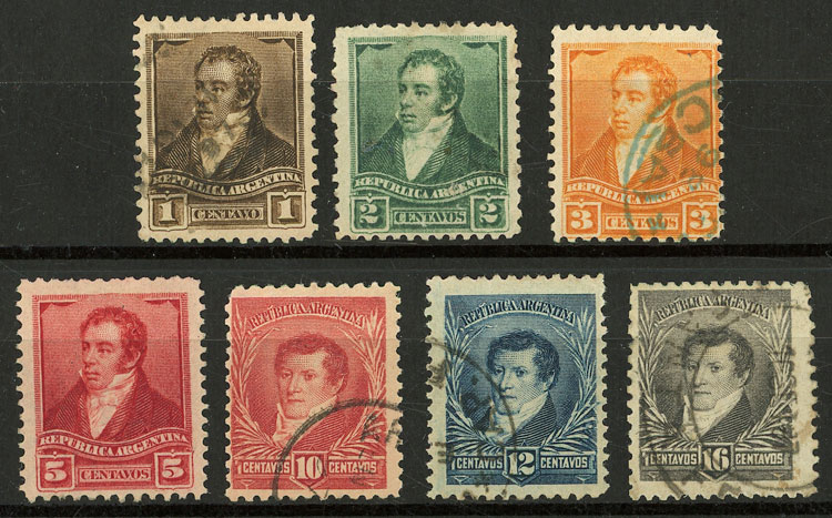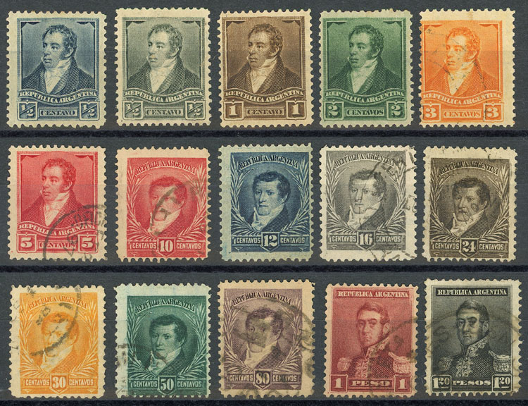 GJ.190/203, 1896 Rivadavia Belgrano & San Martin, PERFORATION 12, the complete set up to 1.20P., used (some mint), excellent quality! (Image)