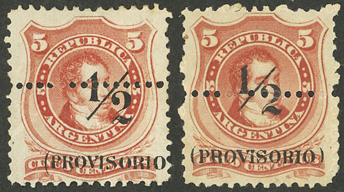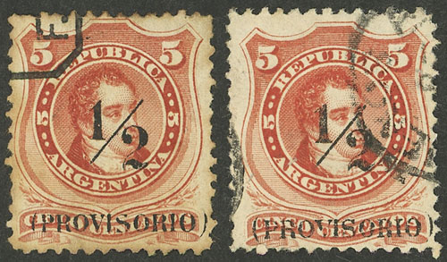 GJ.69/70, with vermilion + carmine-rose ovpt. (Image)