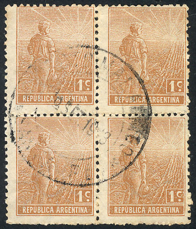 block of 4, reinforced with hinges, with postmark of "RAMOS OTERO" (Bs As) of 23/FE/1915 (Image)