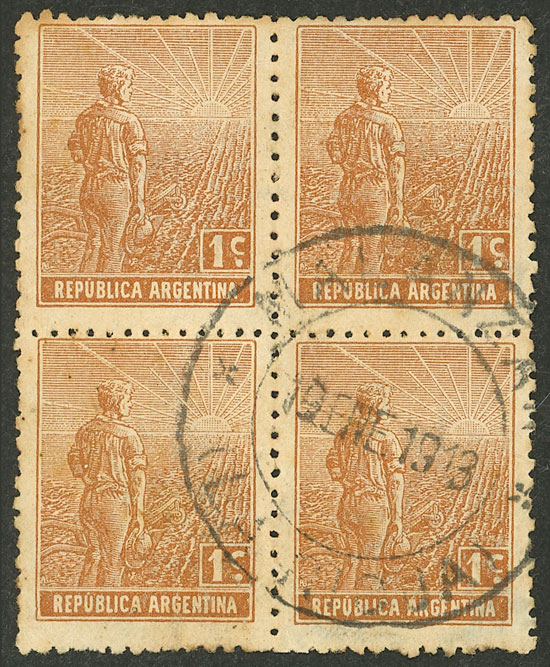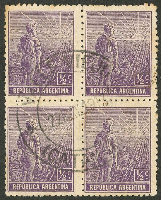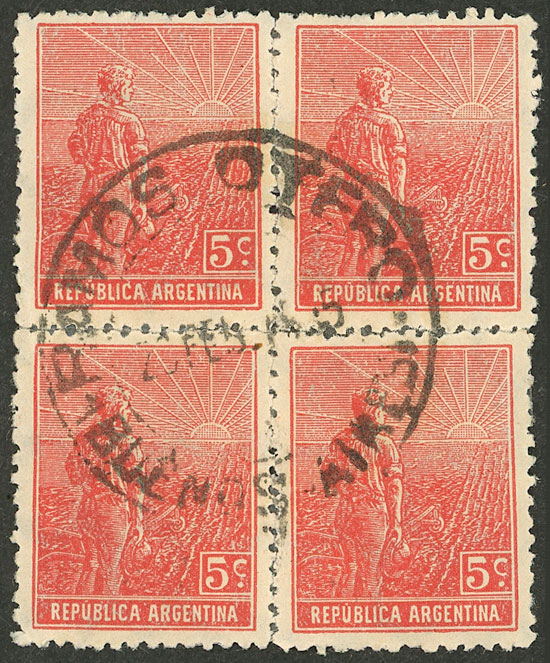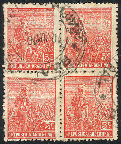 block of 4 with postmark of "VALLE VIEJO" (Catamarca) of 22/MAY/1913 (Image)