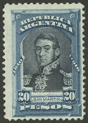 $20 San Martín, very fresh example with signature of V. Kneitschel on back, VF (Image)