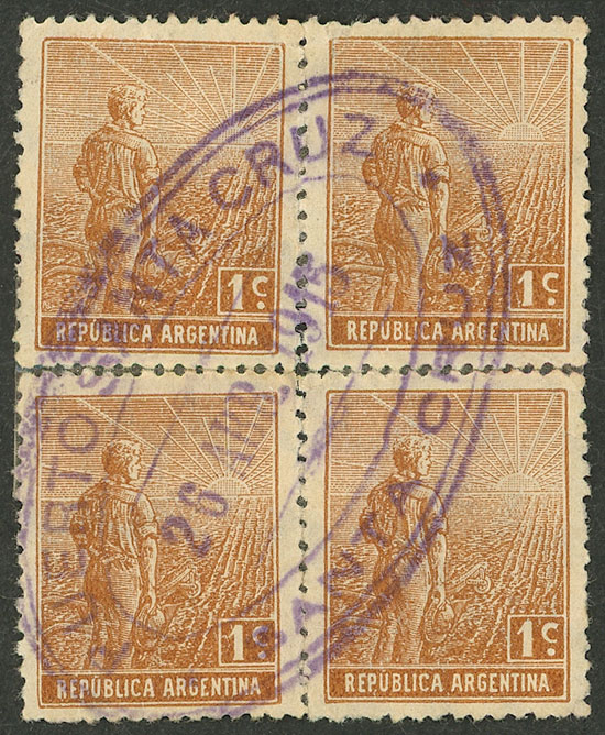block of 4, reinforced with hinges, with postmark of "PUERTO SANTA CRUZ" of 26/AP/1915 (Image)