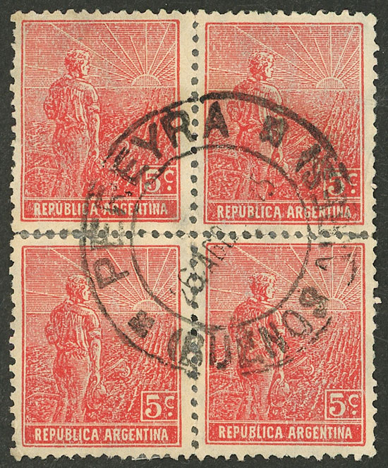 block of 4, reinforced with hinges, with postmark of "PEREYRA" (Bs As) (Image)