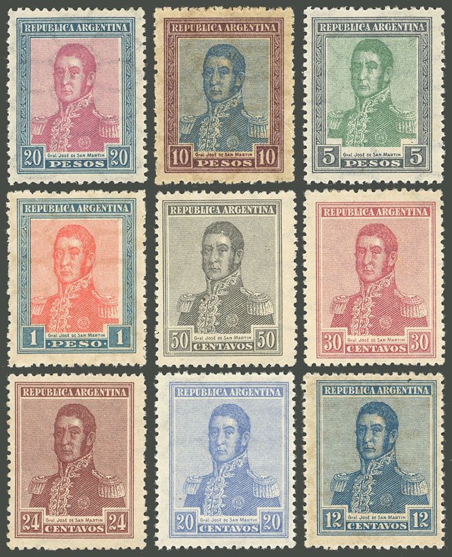 GJ.447/455, the 9 high values of the set, all of VF quality (Image)