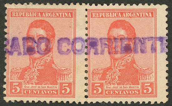 pair, reinforced with hinges, with violet postmark of ship "(VAPOR C)ABO CORRIENTE (ES)", rare! (Image)