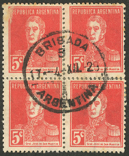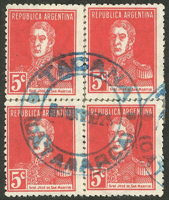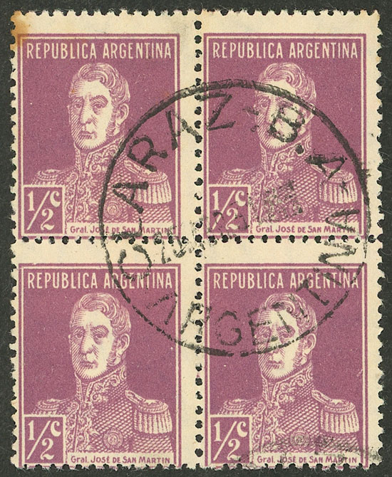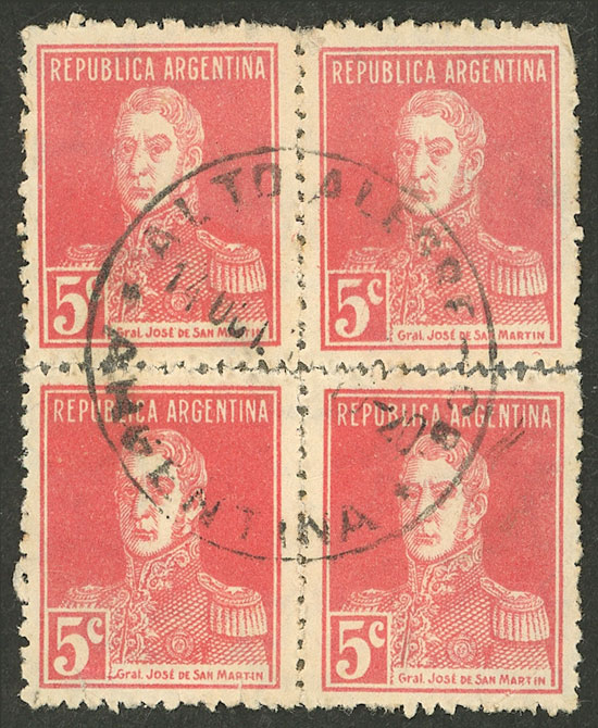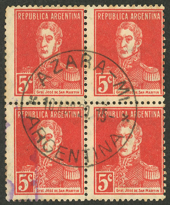 block of 4, with postmark of "AZARA" (Misiones) (Image)