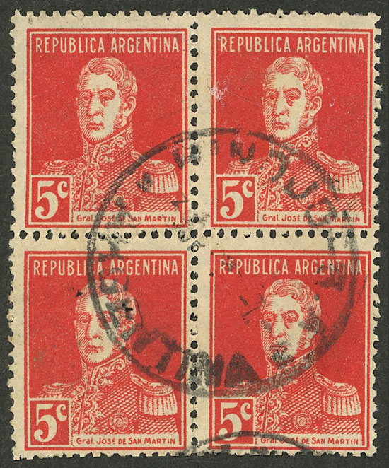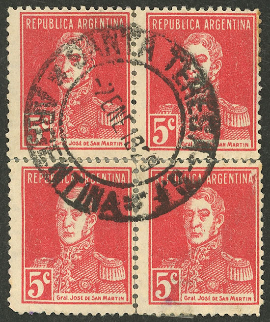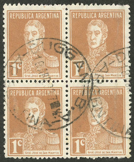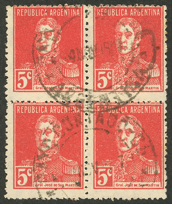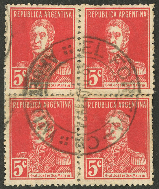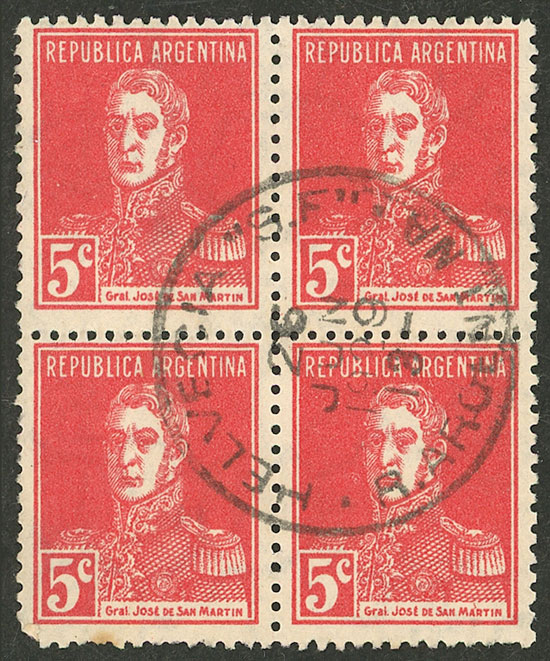 block of 4, with postmark of "RAYO CORTADO" (Córdoba) (Image)