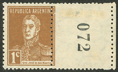 GJ.595CD, with right label and sheet number, with VARIETY: vertical perforation shifted (narrower stamp) (Image)