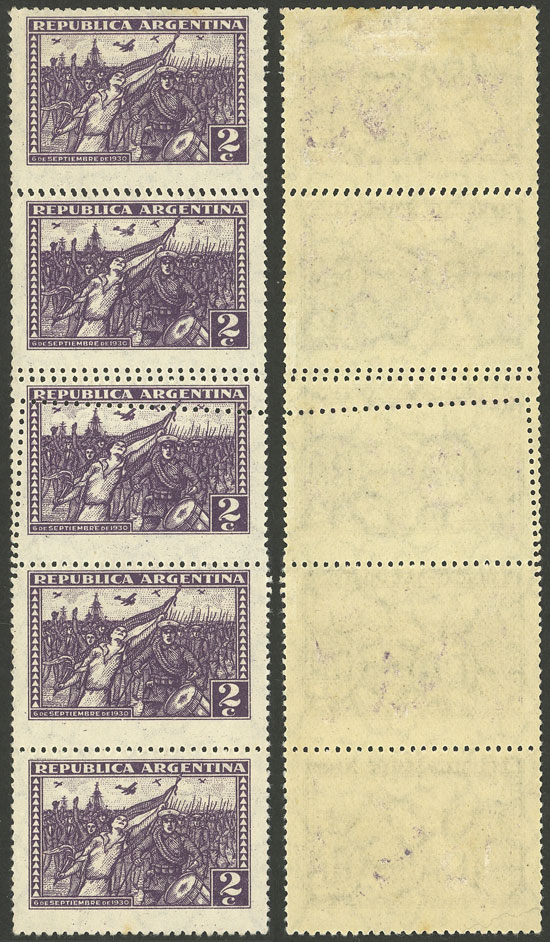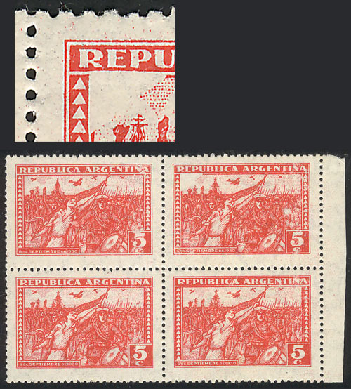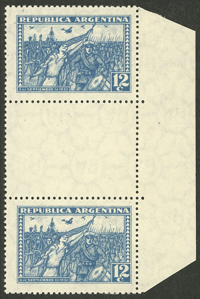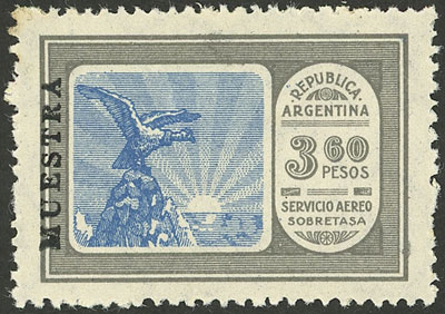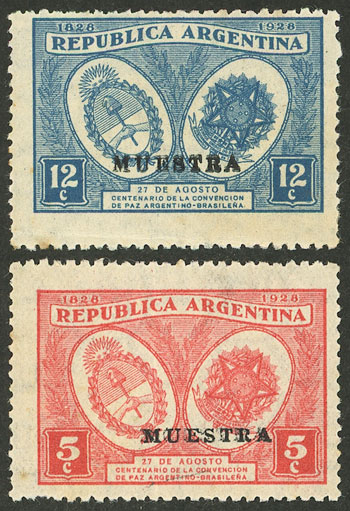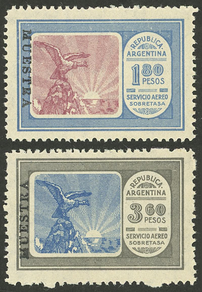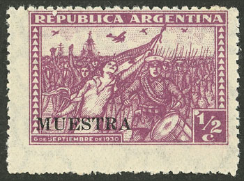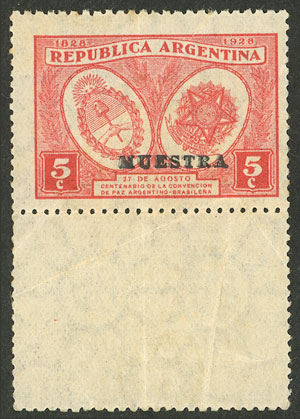 with MUESTRA overprint, and label below (from a gutter with catalog value US$1000), paper creases, rare (Image)