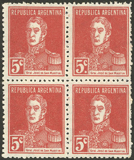 block of 4 with cancel of "SEGUROLA" (Buenos Aires), VF (Image)