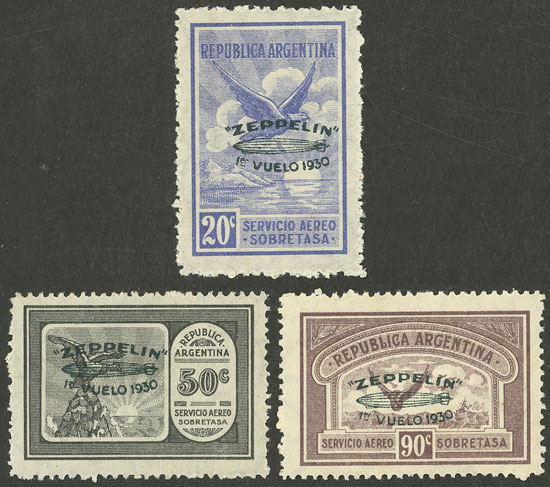 GJ.665/667, set with green "ZEPPELIN - 1er vuelo 1930" ovpt., the 3 first values of the set, MNH (Image)