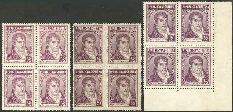 780 + 802, ½c. blocks of 4 printed on grené paper + (dim) straight rays + without watermark (Image)