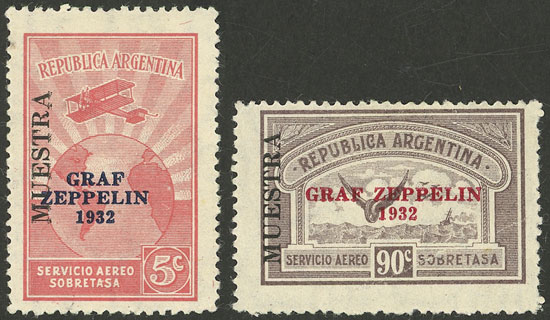 722, 2 values of the set with MUESTRA ovpt., very rare! (Image)