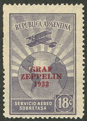 18c., overprinted "GRAF ZEPPELIN - 1932" in LILAC (printed on Dutch paper) (Image)