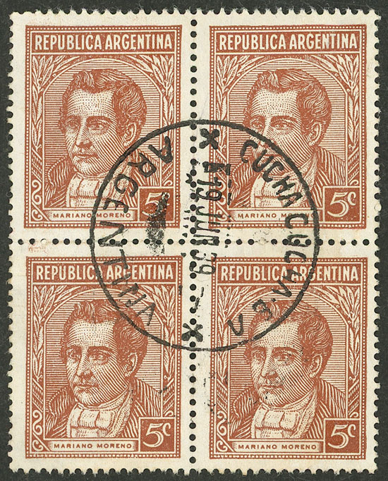 block of 4 with postmark of "CUCHA CUCHA" (Bs As) of 19/JUN/1939 (Image)