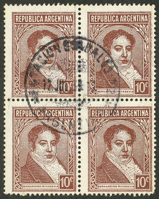 block of 4 with postmark of "ESTACIÓN GUADALES" (Mendoza) (Image)