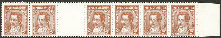 GJ.800EV, horizontal strip of 6 with gutter and sheet margin, handsome (Image)