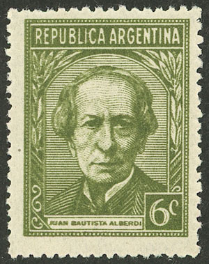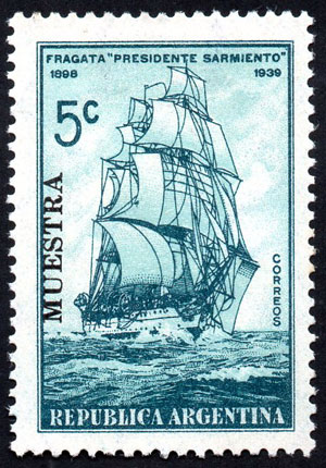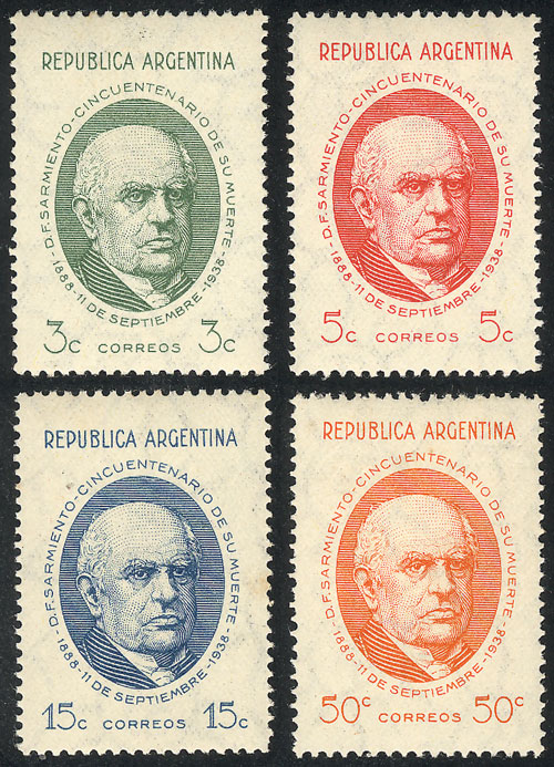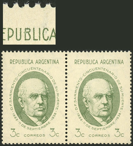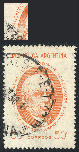 with VARIETY: "E" of SARMIENTO without middle stroke and right "4" incomplete (pos.63), VF (Image)