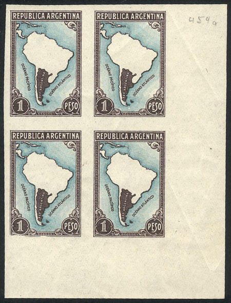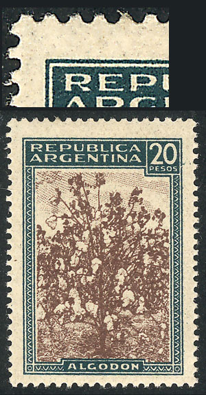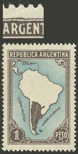 $1 Map without worders, with VARIETY: Retouch on the frame above "RG" of ARGENTINA (Image)