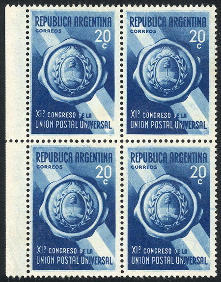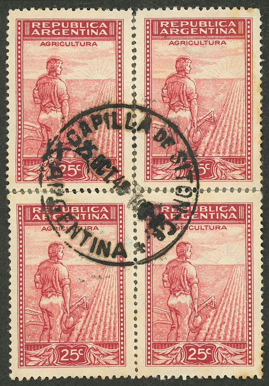 block of 4, reinforced with hinges, with postmark of "CAPILLA DEL SITON" (Córdoba) of 25/OC/1948 (Image)
