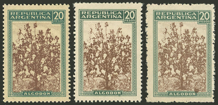 $20 Cotton, printed on paper without watermark with pattern parallel to long side + compact pattern + Canadian paper (Pettigiani catalog value US$105 + 50%), all MNH