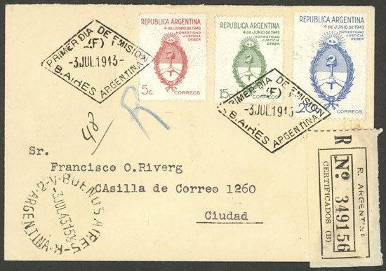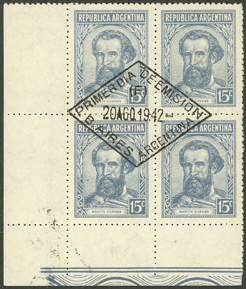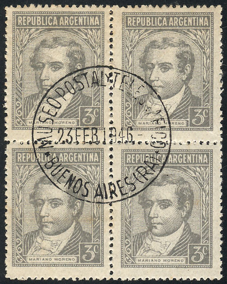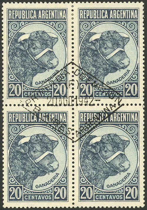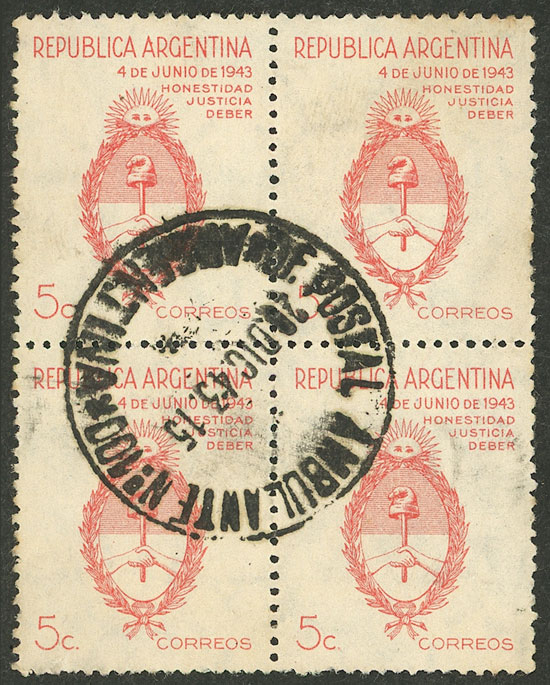 block of 4 with postmark of "OF. POSTAL AMBULANTE N° 100" of 20/DE/1943 (Image)