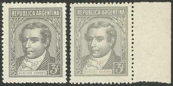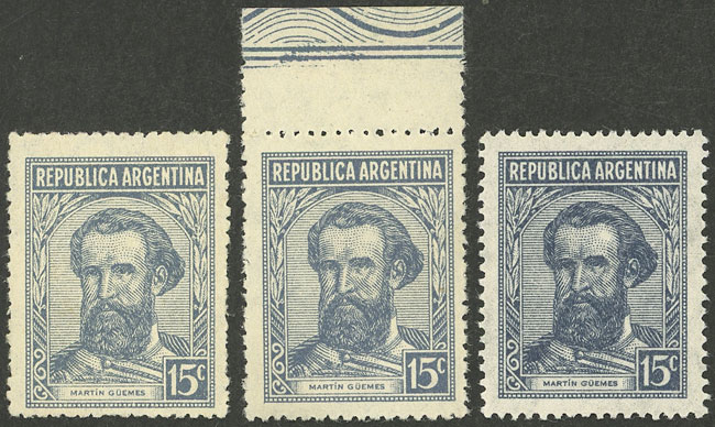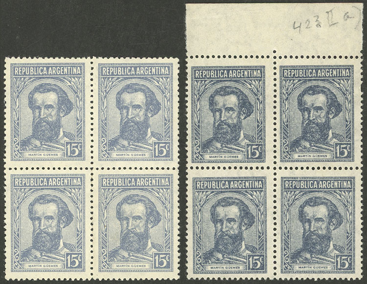 883 + 883b, 15c. Martín Güemes, with clear + dim straight rays wmk + round sun wmk, the latter is very rare! (Image)