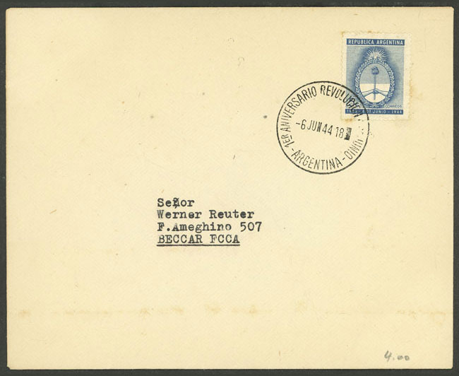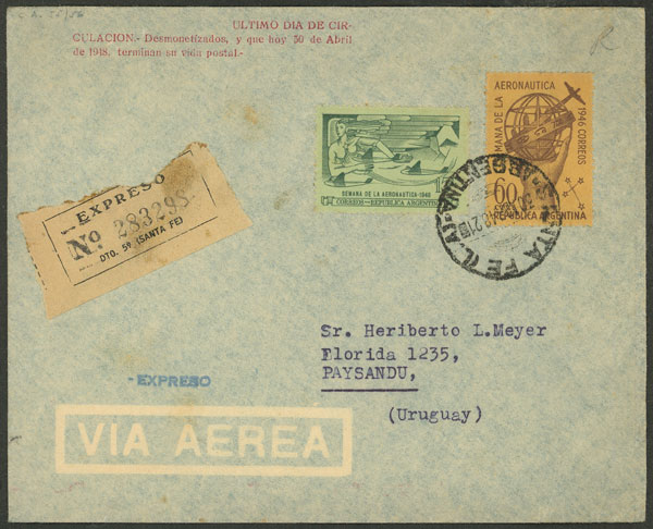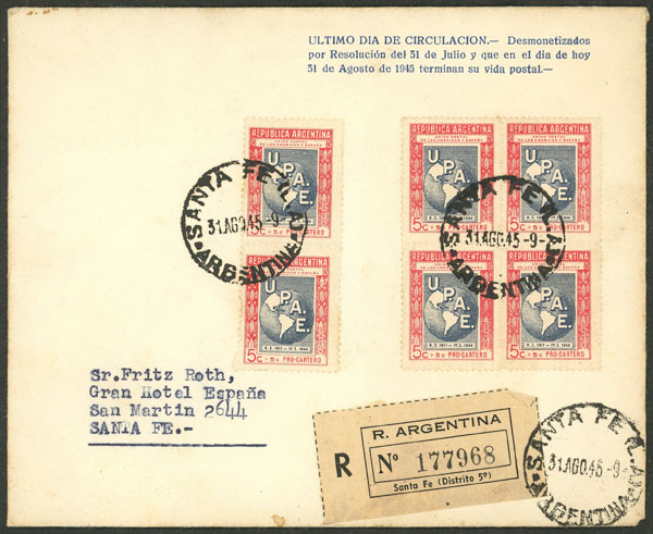 OF USE: GJ.907, stamps franking a registered "last day of use" cover, used in Santa Fe on 31/AU/1945 (Image)