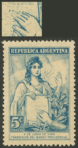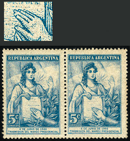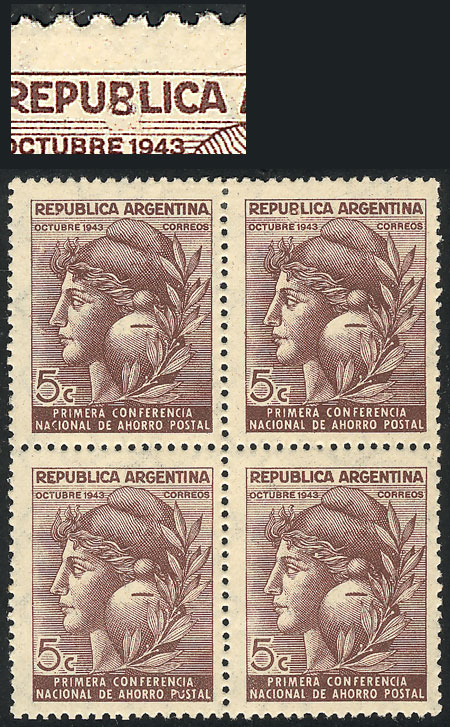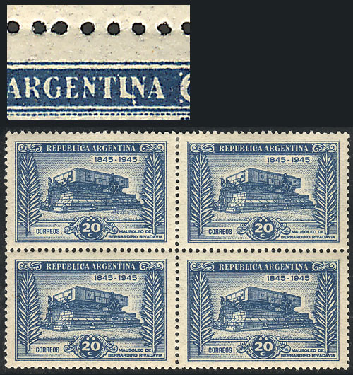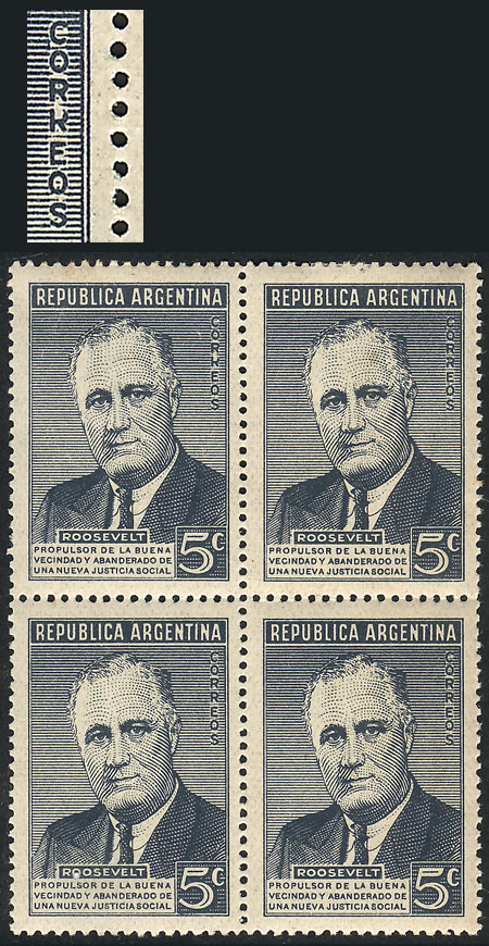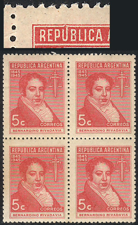block of 4, one with "ARGENTLNA" variety (Image)