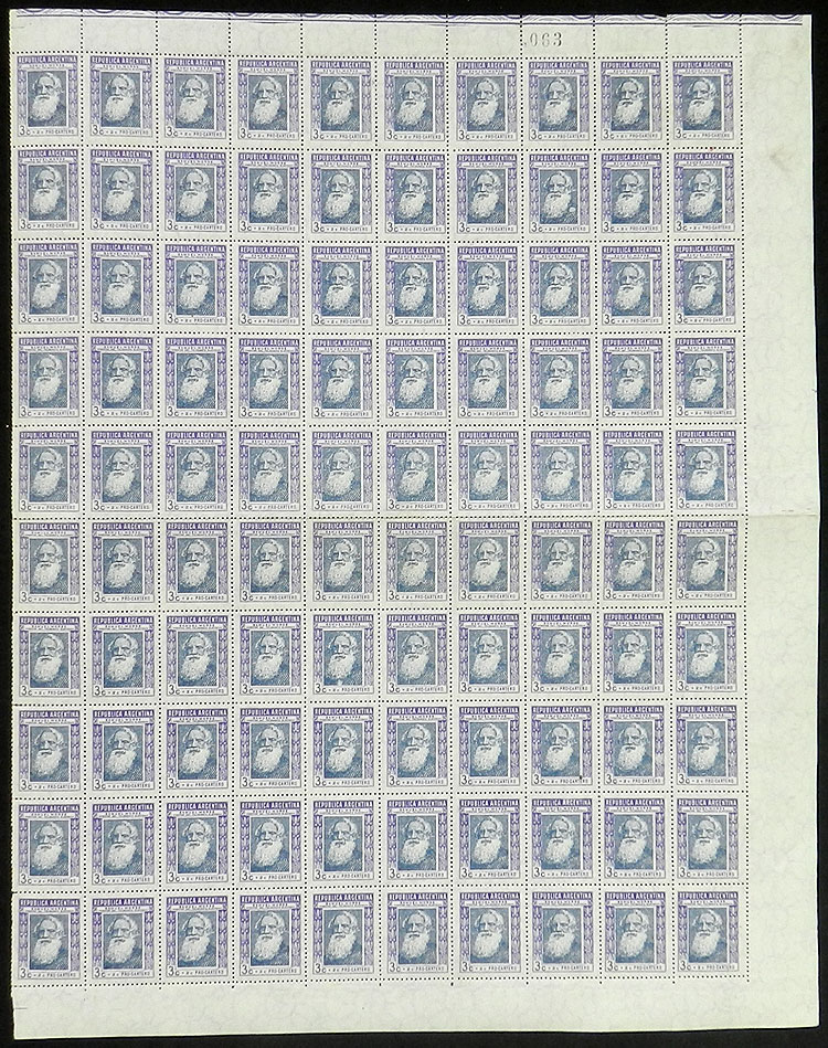 3c+2c Postal welfare, right half of a sheet (100 stamps), VF quality! (Image)