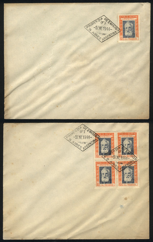 10c+5c Postal welfare, single + block of 4 on first day covers, VF! (Image)