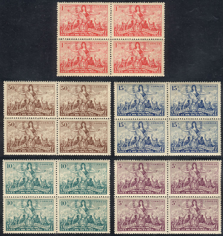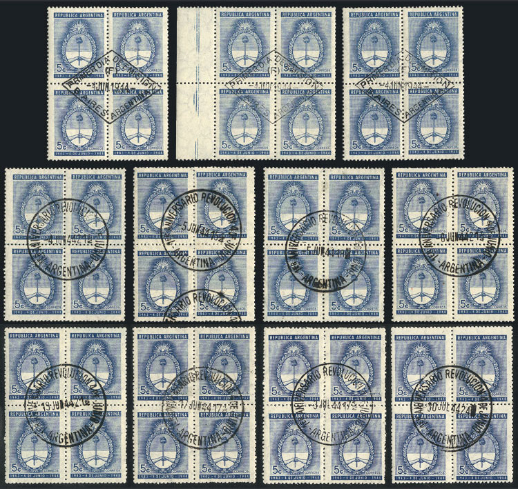 blocks of 4, with first day postmarks + 1st anniversary of the Revolution, with different dates (Image)