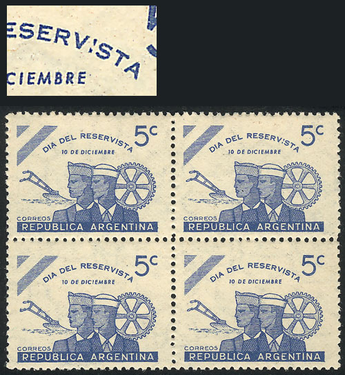 block of 4, one with VARIETY: "I" of RESERVISTA broken, VF (Image)