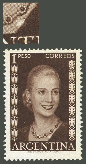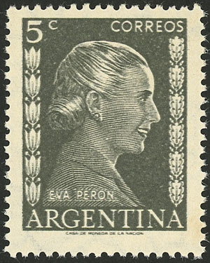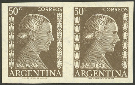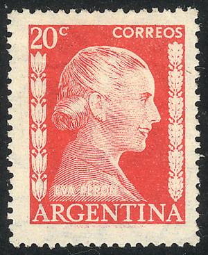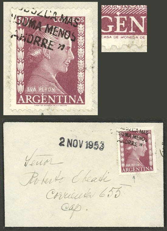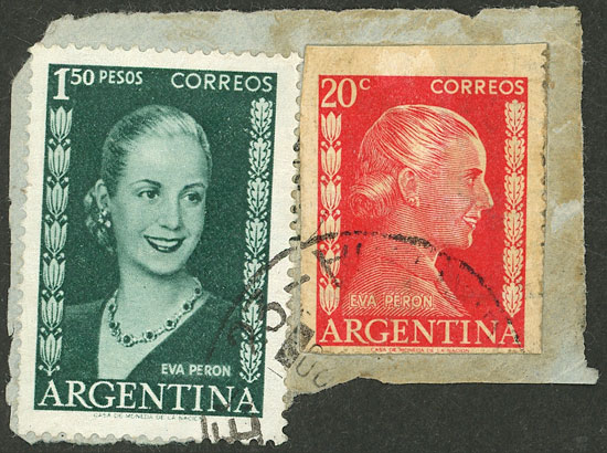 +1012, fragment with a forgery of the 20c. Eva Perón stamp (total postage $1.70), unusual! (Image)