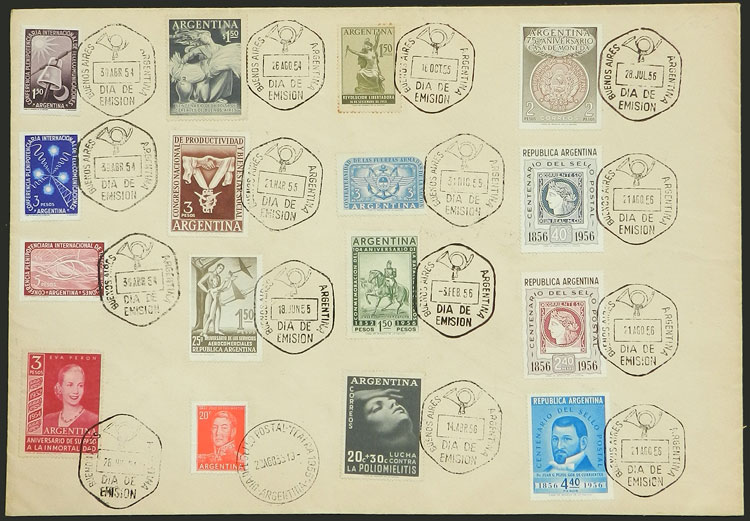 + other values, 16 stamps issued in 1954/6 on an envelope with first day pmk, VF (Image)