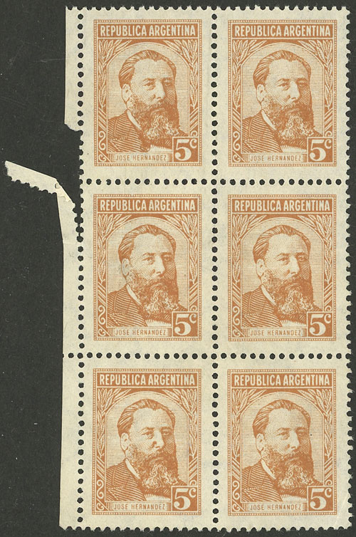 5c. Hernández, block of 6 from second printing, with interesting note about the differences with the 1st printing (Image)