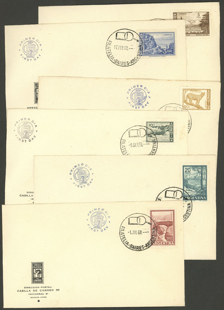 GJ.1123 + 1125 + 1137 + 1140 + 1142 + 1145, 6 values of the set on FDC covers (Image) (Image-02)