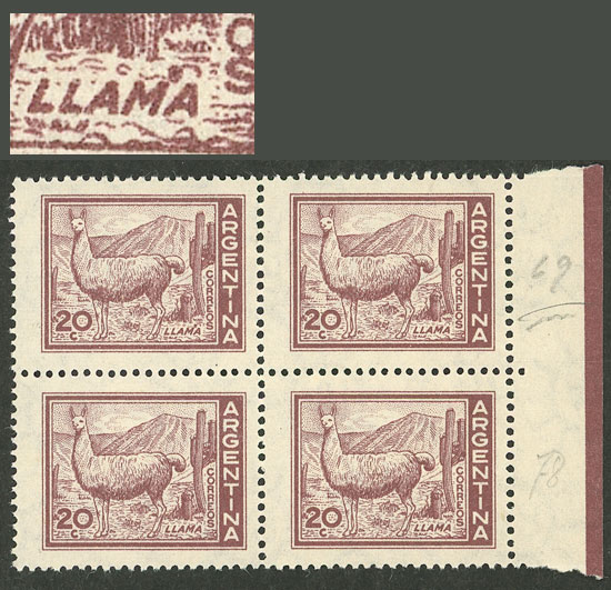 marginal block of 4, one with "LLAMÁ" variety (last A with accent) (Image)