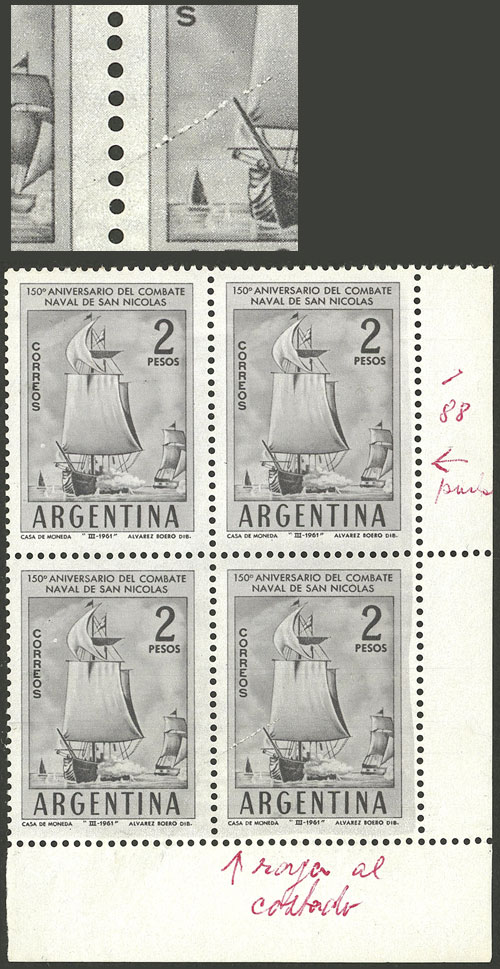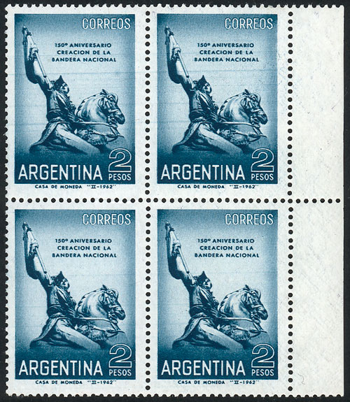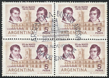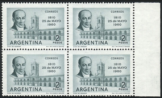 $2 May Revolution 150 years, marginal block of 4 printed on GLAZED paper. (Image)