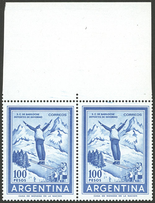 GJ.1148B, Skier, pair with immense sheet margin, VF (Image)