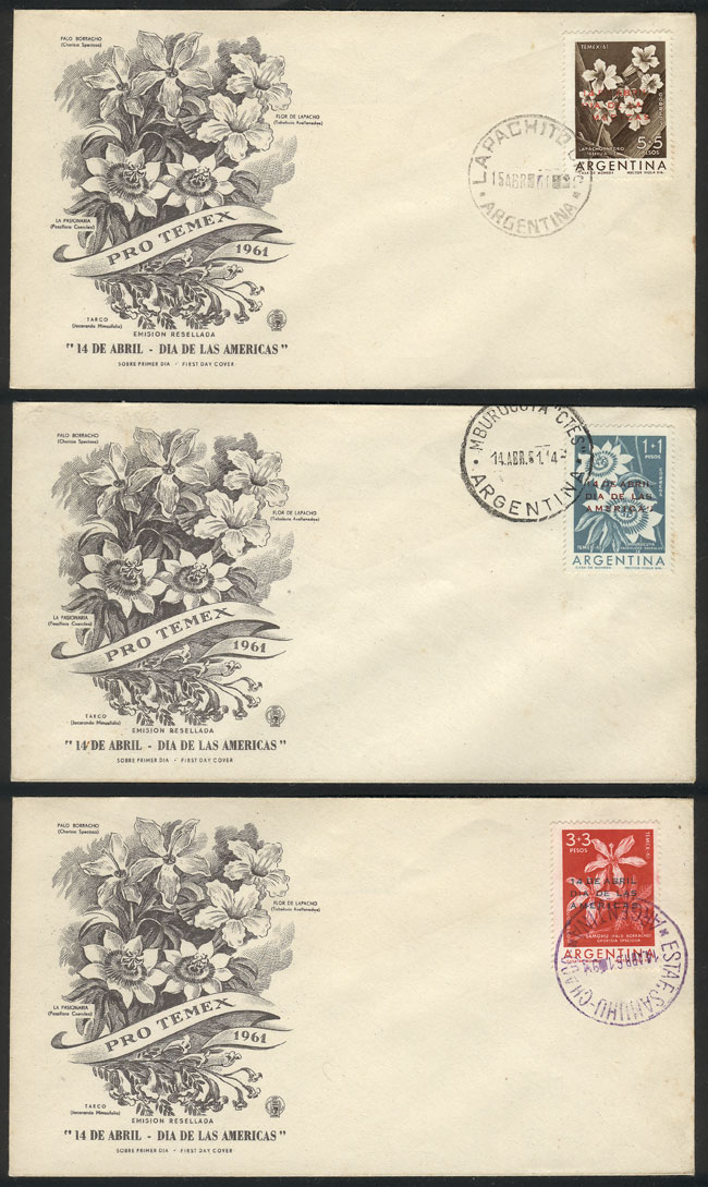 GJ.1212/1214, Pan-American Day, 3 values of the set on first day covers, with postmarks of towns with the same name as the flower, rare lot! (Image)