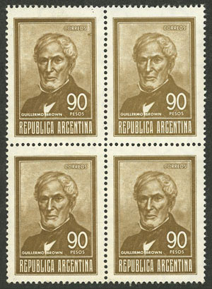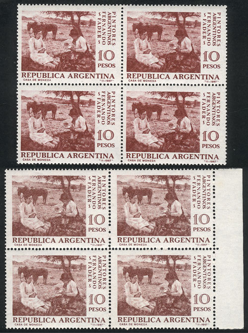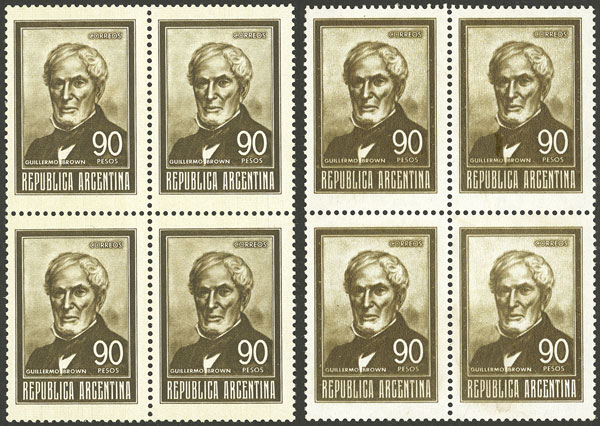 blocks of 4 printed in chestnut and redish chestnut (type), interesting! (Image)