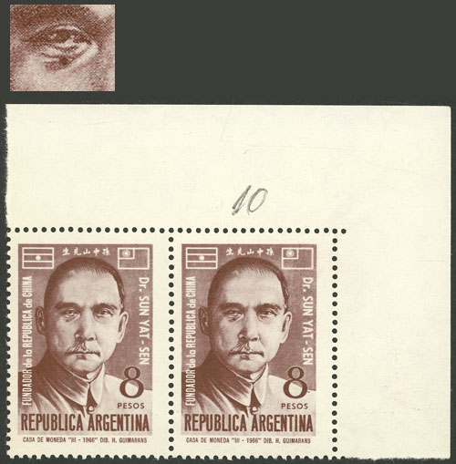 Sun Yat-sen, corner pair, one with VARIETY: Spot below the eye (Image)