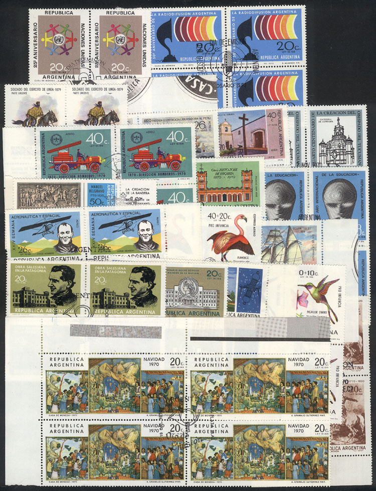 GJ.1510/20 + 1545/52, 1970 complete yearset of commemorative stamps, in blocks of 4 with first day postmark, VF quality (Image)