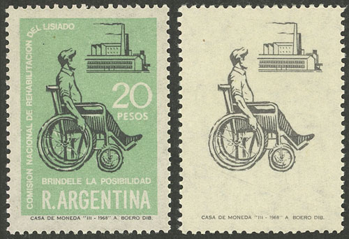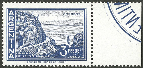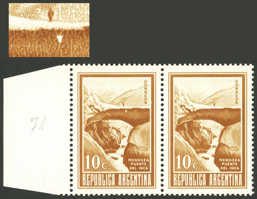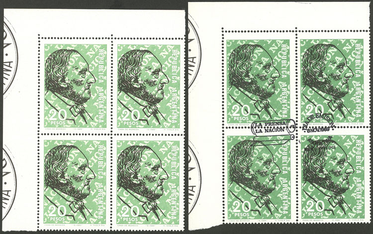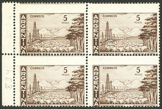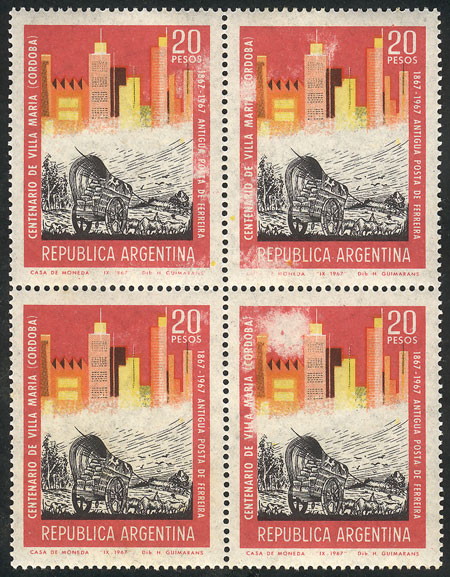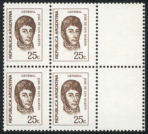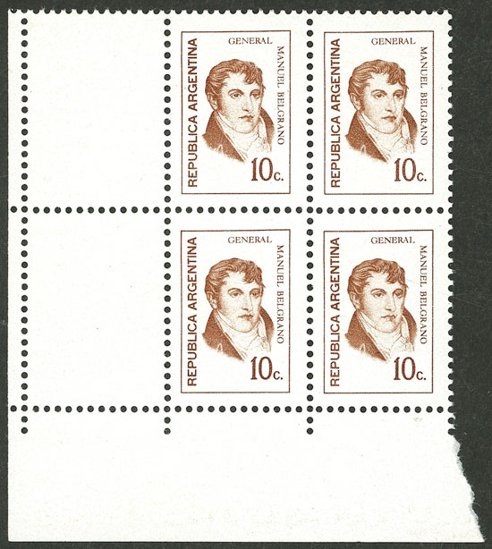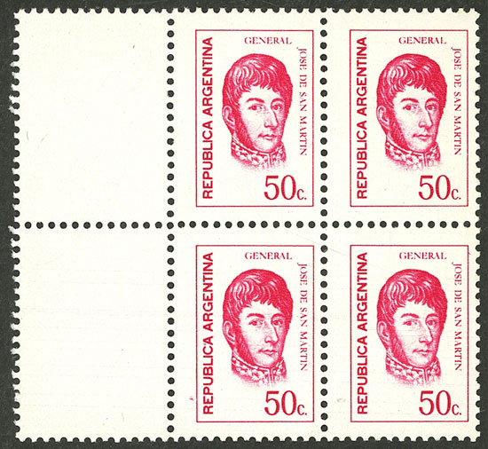 block of 4 with Casa de Moneda wmk, with VARIETY: shifted perforation (Image)