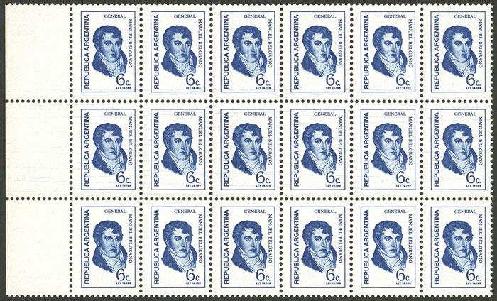 block of 18 with VARIETY: Thin horizontal color lines along the stamps (Image)