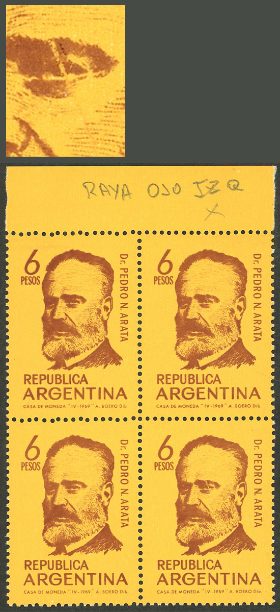 marginal block of 4, the right stamps with VARIETY: line over an eye (Image)